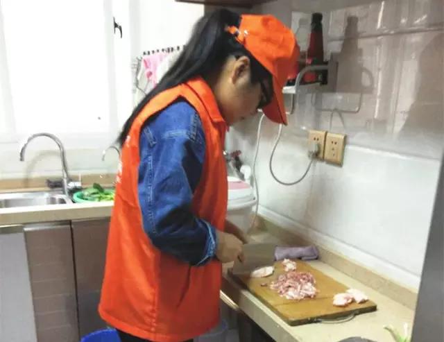 普親樹志愿者們?yōu)槭褯_社區(qū)高齡老人做午飯