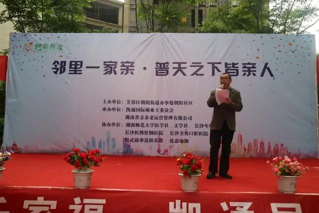 湖南普親養(yǎng)老機(jī)構(gòu)運(yùn)營管理有限公司總經(jīng)理黃宇新在致辭中講到,“我們是有信心,更有決心將咱們朝陽社區(qū)居家養(yǎng)老服務(wù)綜合中心打造成 “溫馨、愉悅、健康”的養(yǎng)老之家,讓朝陽社區(qū)的老人們真正實(shí)現(xiàn)“老有所樂、老有所為、老有所學(xué)、老有所教、老有所醫(yī)、老有所養(yǎng)”,為建設(shè)和諧社會(huì)貢獻(xiàn)一份力量�!�
