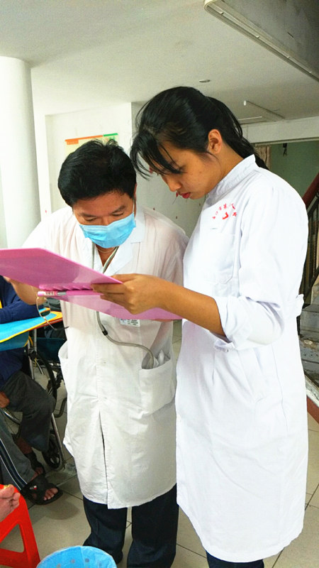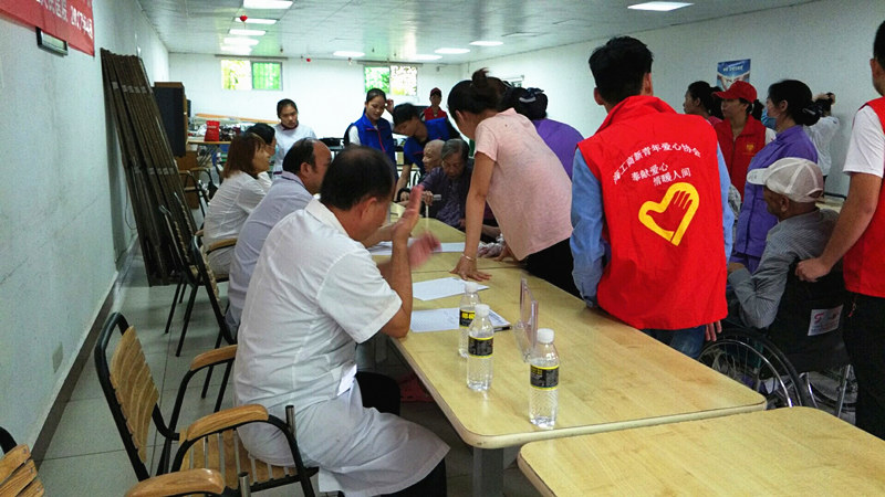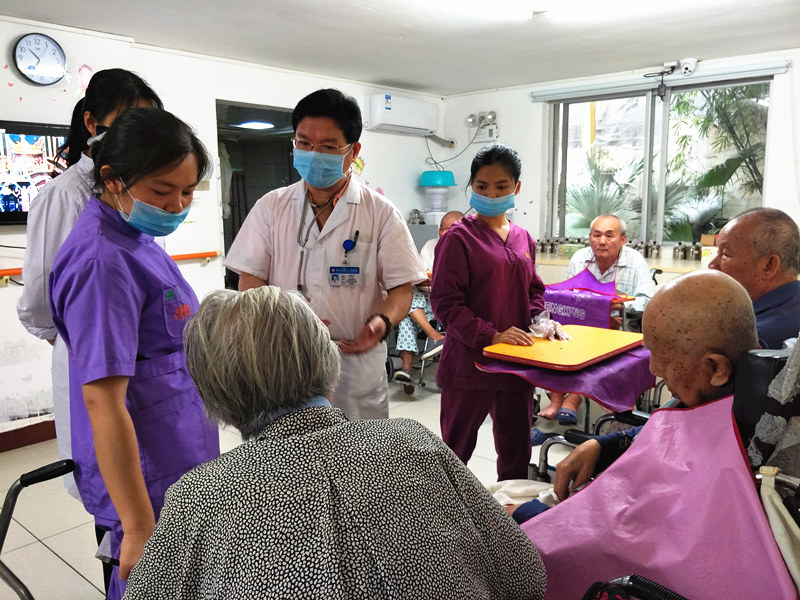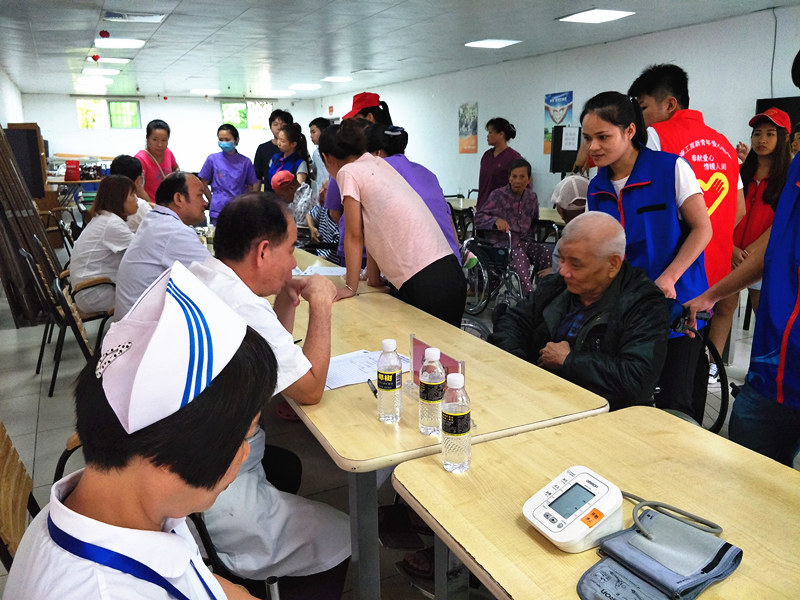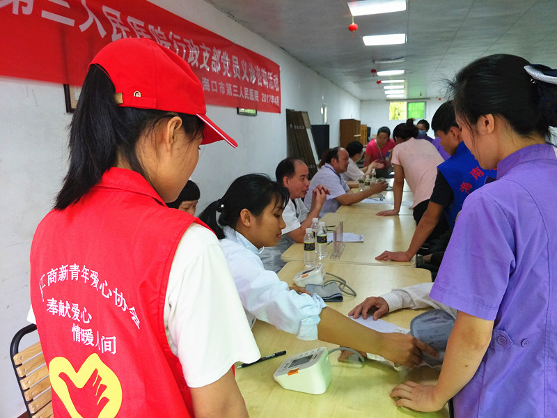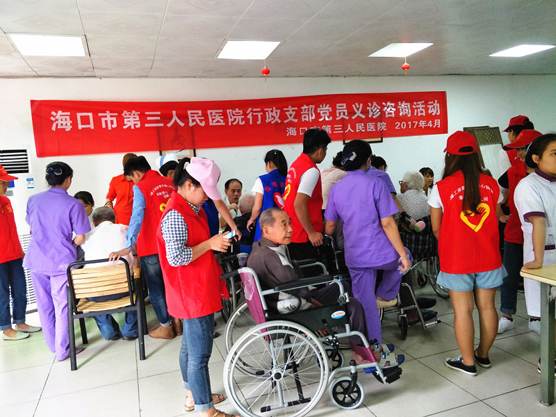 2017年4月22日上午9點(diǎn)-11點(diǎn),中共�?谑械谌嗣襻t(yī)院行政支部黨員在瓊山機(jī)構(gòu)開(kāi)展義診,本次活動(dòng)由第三人民醫(yī)院行政支部書(shū)記胡金牛負(fù)責(zé),義診主要包括內(nèi)科、外科、中醫(yī)等項(xiàng)目。其中外科由鄧高鵬(院長(zhǎng)、骨科副主任醫(yī)師)、中醫(yī)由毛新龍(副院長(zhǎng)、主任醫(yī)師)負(fù)責(zé)、內(nèi)科由胡金牛(院長(zhǎng)助理、內(nèi)科副主任)醫(yī)師負(fù)責(zé)、護(hù)理及測(cè)血壓等工作由施秒萍負(fù)責(zé)。衛(wèi)生大掃除由行政支部副書(shū)記負(fù)責(zé),成員由參加義診外的所有行政支部黨員組成。這次是普親與�?谑械谌嗣襻t(yī)院簽署醫(yī)養(yǎng)合作協(xié)議后開(kāi)展的首場(chǎng)活動(dòng),獲得醫(yī)院方的高度關(guān)注,派出科室科長(zhǎng)和多名專家坐診。老人們踴躍參與,向主任醫(yī)師講述自己的病情,并對(duì)癥開(kāi)方。專家主任醫(yī)師還親到重度臥床病人旁,詳細(xì)查看老人病歷和病癥,并給出治療和護(hù)理建議。家屬對(duì)普親能積極拓展合作渠道,請(qǐng)來(lái)專業(yè)醫(yī)師診療老人給予高度評(píng)價(jià)!