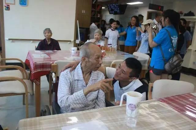 上圖:CGCA執(zhí)委會(huì)成員關(guān)延斌和機(jī)構(gòu)老人交流