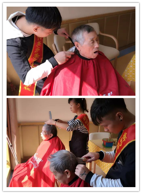 ▲愛心志愿者們?yōu)槔先藗兞x剪