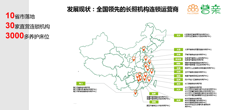 ▲普親養(yǎng)老長(zhǎng)照機(jī)構(gòu)落地的十個(gè)省份