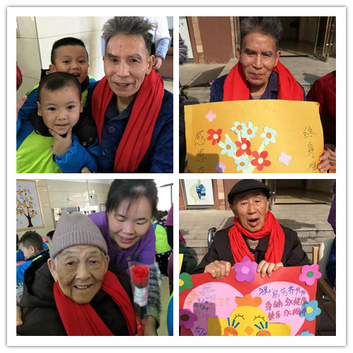 感恩節(jié)當(dāng)天,陽(yáng)光明媚,而同樣明媚的還有來(lái)自龍泉幼兒園的小朋友們的笑臉,他們帶著精心準(zhǔn)備的節(jié)目,抱著用賣(mài)報(bào)紙積攢的錢(qián)買(mǎi)來(lái)的紅圍巾來(lái)到了咱們株洲普親老年養(yǎng)護(hù)院,陪著爺爺奶奶們共度了一個(gè)開(kāi)心的感恩節(jié)。
