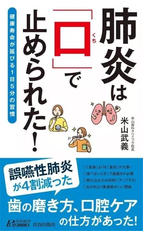 米山醫(yī)生的著書和倡導得到了日本廣大牙醫(yī)們的贊同和響應,無論您去日本的任何一家牙科診所,都會或多或少地聽到擔當?shù)尼t(yī)生或者齒科衛(wèi)生士講述預防誤咽性肺炎的重要性和方法,這一課題已經被列入日本厚生勞動省“延長健康壽命”的重要一環(huán)。