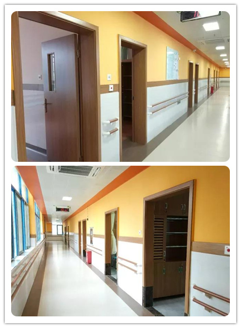考慮到入住老人的生理特征,室內(nèi)設(shè)置了大面積的無(wú)障礙通道區(qū)域,避免磕碰的同時(shí)也為長(zhǎng)輩們創(chuàng)造了空間進(jìn)行百步走、早操鍛煉,通道兩面的墻體下部均設(shè)置有人性化圓形扶手,上部扶手方便能夠行走或站立的老人,下方扶手則方便坐輪椅的老人,貼心舒適。