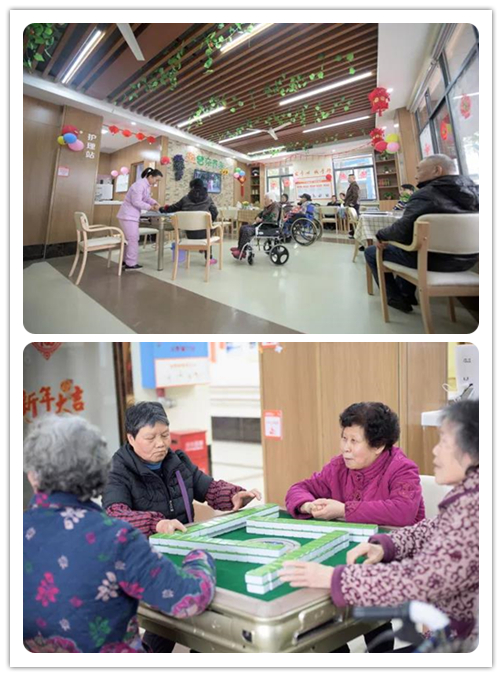 寬敞明亮、溫馨舒適是家屬們走進活動室最直觀的感受,老人們在這里觀看電視節(jié)目、聊天搓麻、學(xué)習(xí)手工制作、進行康復(fù)鍛煉……每時每刻都能感受到家的溫暖。