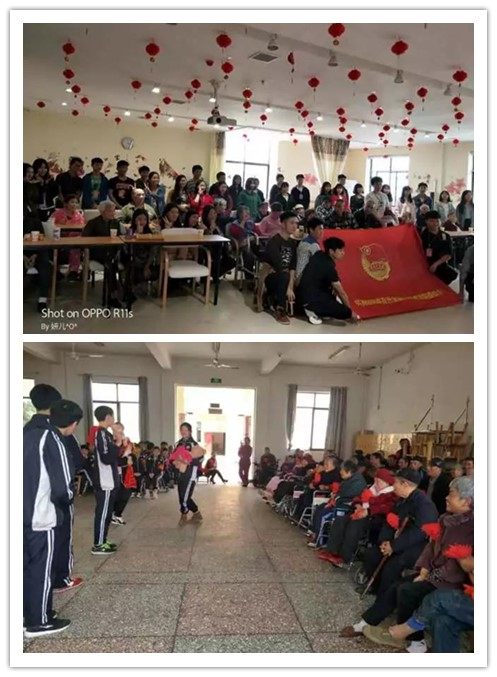 獻(xiàn)上了大紅花,志愿者又為咱們養(yǎng)護(hù)院的爺爺奶奶們呈現(xiàn)了早已準(zhǔn)備好的精彩表演,現(xiàn)場(chǎng)歡聲笑語(yǔ),其樂(lè)融融。
