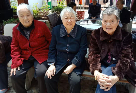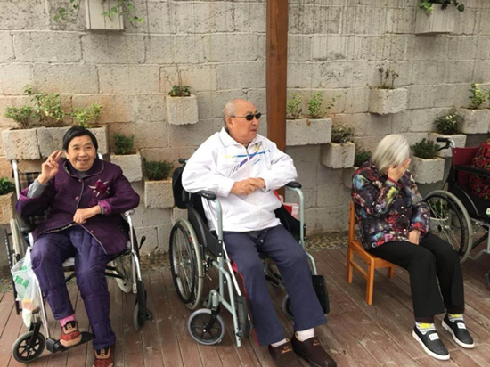 天氣好的時候,護(hù)理員會帶爺爺奶奶們會出來曬太陽