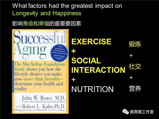 很多的研究表明,包括《成功老齡學(xué)》這本書的研究發(fā)現(xiàn),除了基因以外,后天能夠決定的影響健康和幸福的最主要因素就是鍛煉、社交和營養(yǎng),而其中建筑設(shè)計(jì)能夠起到一定提升作用的主要就是鍛煉和社交,這是我們?cè)谠O(shè)計(jì)中需要注意的一個(gè)重要的出發(fā)點(diǎn)。