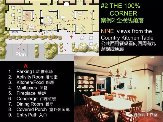 像這樣一種既能夠?yàn)橛^察者提供一些視覺上的保護(hù),又能夠鼓勵(lì)他們?nèi)ミh(yuǎn)眺景色而又不顯眼的眺望區(qū),對(duì)老人來說非常重要。這個(gè)是我覺得能夠提升社會(huì)交往興趣和相互遠(yuǎn)觀關(guān)注度的做法。