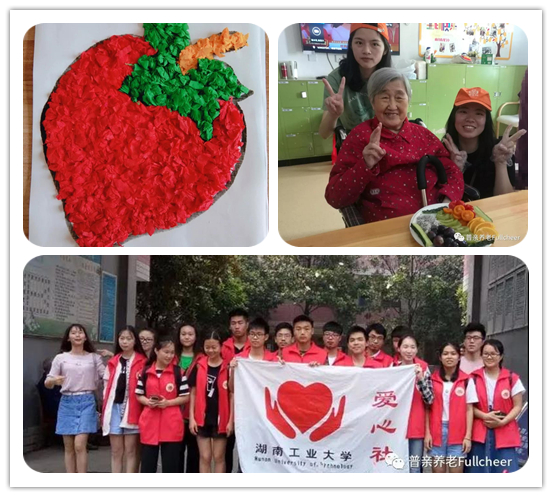 有的老人家屬無法抽身前來,沒關(guān)系,普親養(yǎng)老志愿者也來到各個機構(gòu)慰問我們的老人們。水果拼盤、手工花、才藝表演……每一項活動都能讓奶奶們綻放笑容。