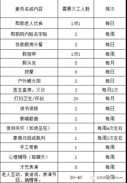 志愿者內(nèi)容相比以往有所增加,以下是我們需要的服務(wù)內(nèi)容,你可以任選項(xiàng)目,只要提前和社工確認(rèn)好時(shí)間和地點(diǎn),就能來(lái)到機(jī)構(gòu)為爺爺奶奶們服務(wù)。