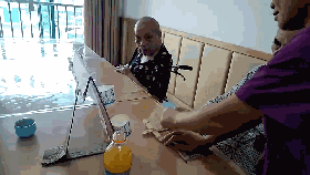 ▲簡單粗暴訓(xùn)練肺活量的乒乓球搬家