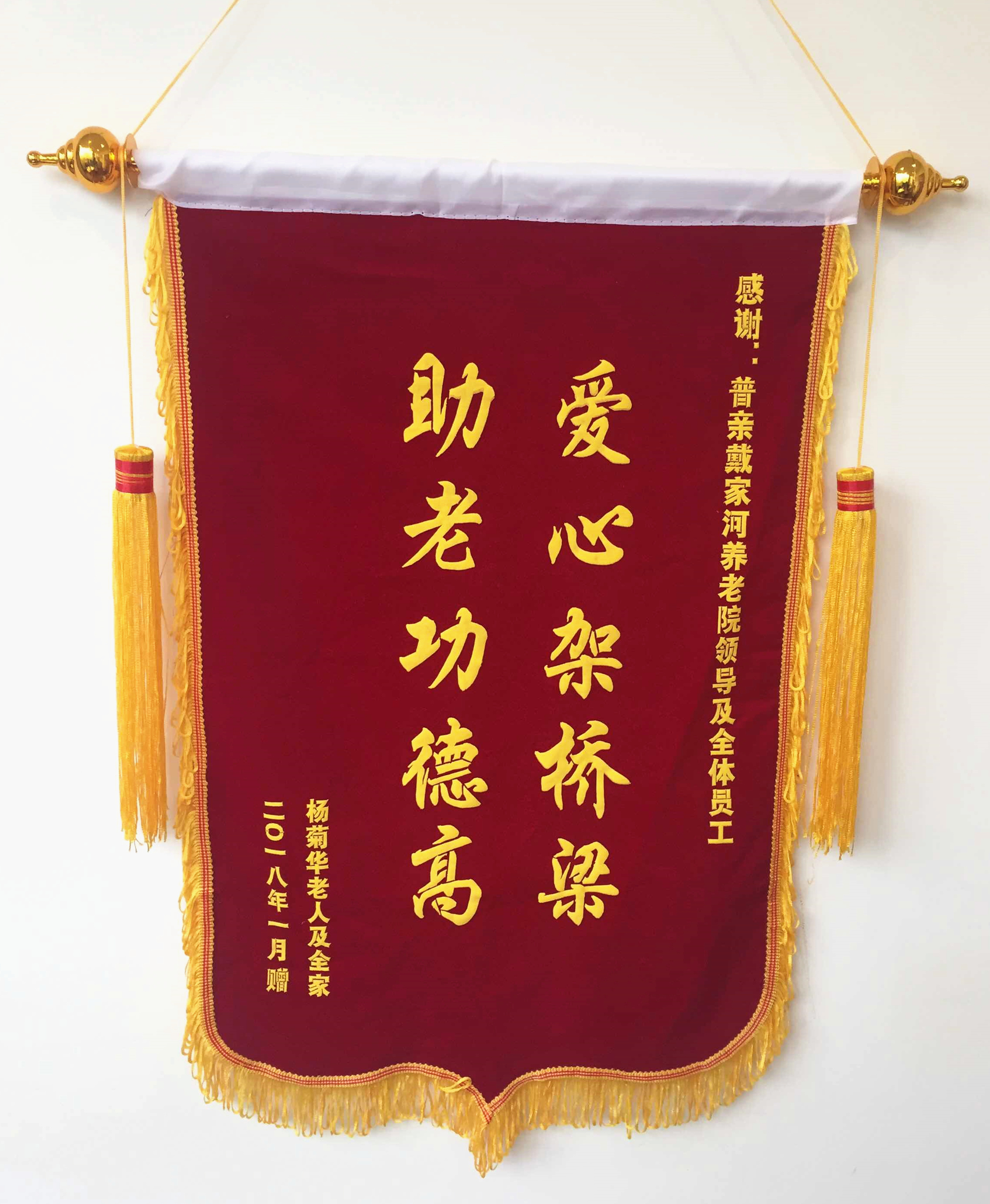 普親老年養(yǎng)護(hù)中心戴家河機(jī)構(gòu)楊菊華家屬贈(zèng)“愛(ài)心架橋梁 助老功德高”錦旗!