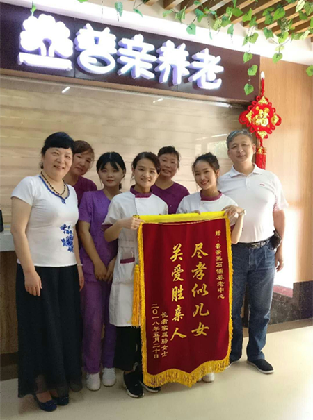長沙普親黑石鋪家屬贈送錦旗“盡孝似兒女·關(guān)愛勝親人”!