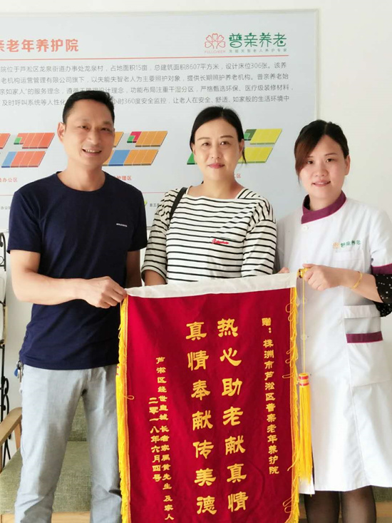 株洲市普親老年養(yǎng)護(hù)院家屬贈(zèng)“熱心助老獻(xiàn)真情·真情奉獻(xiàn)傳美德”錦旗!
